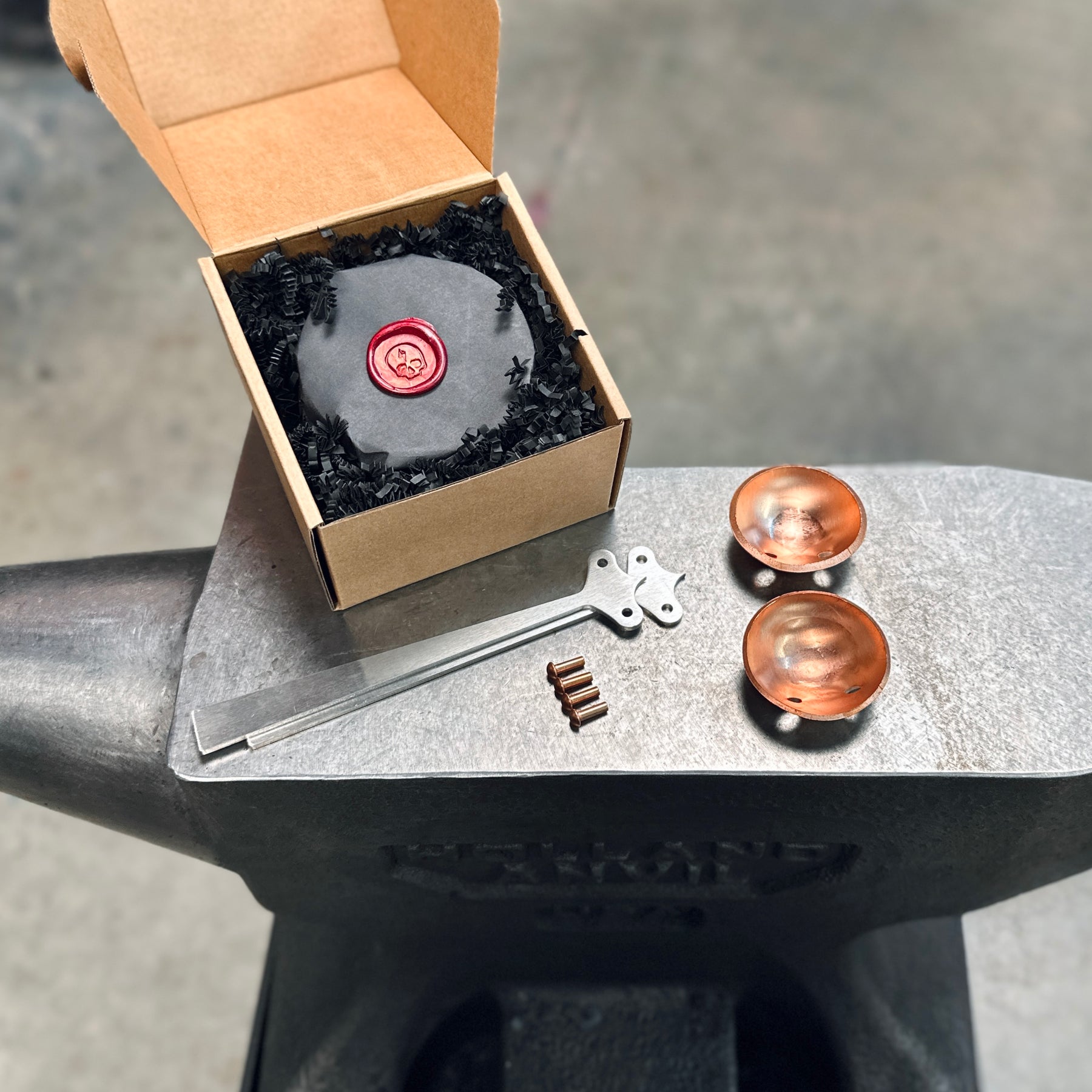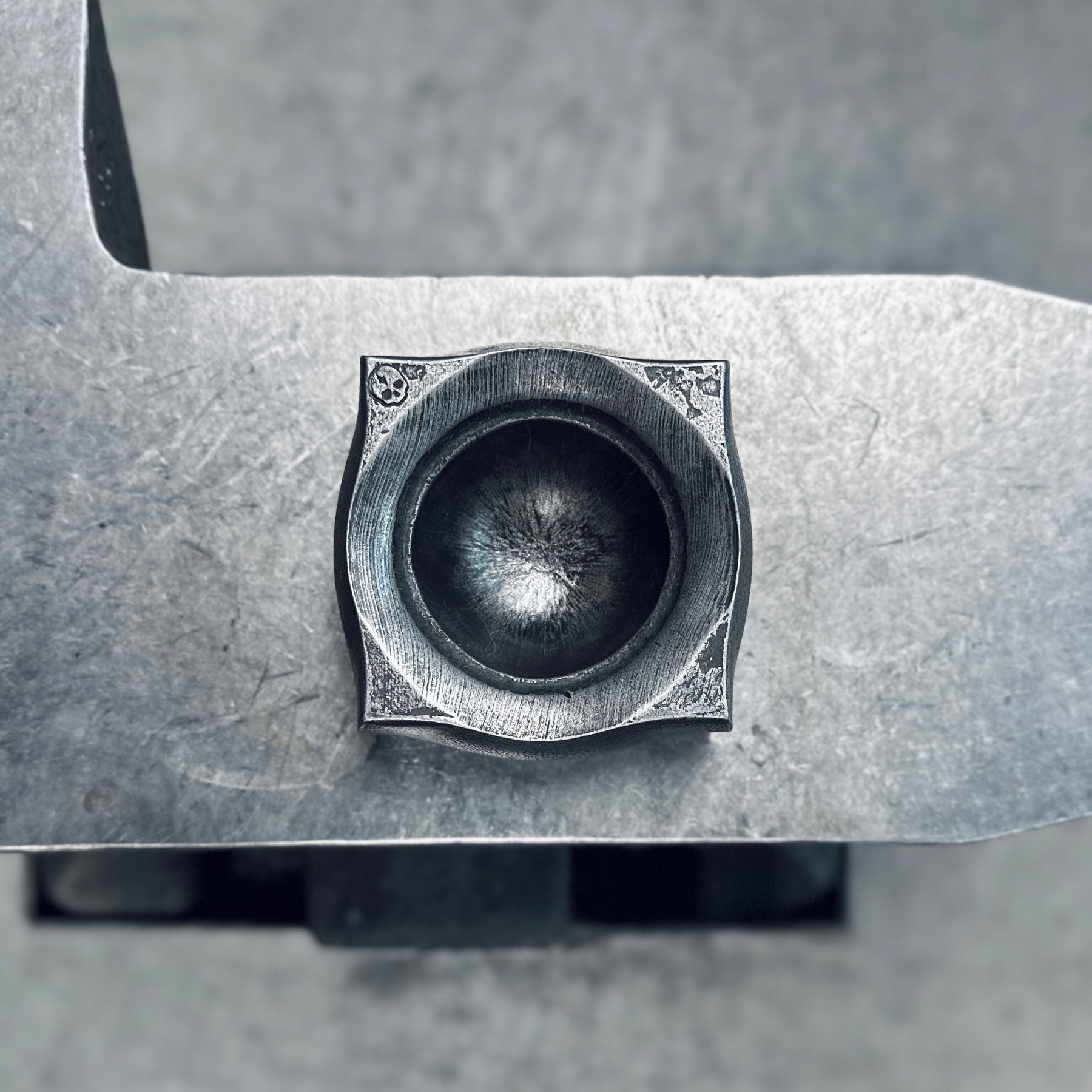 Our swage blocks are all forge-pressed by Brian, Dave, and whoever happens to be visiting our Southwest Florida shop. Every block is hot-stamped with the HM signature skull.