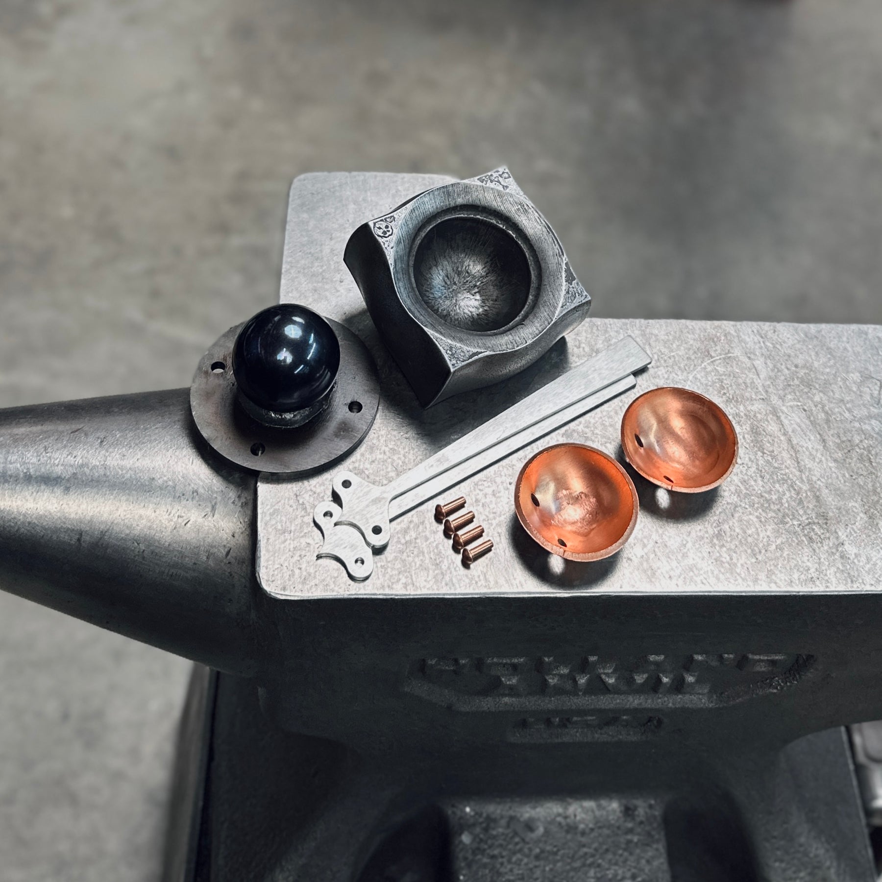 Each 2" Ball Die is fabricated here using a 2" AISI 52100 chrome steel ball bearing and a 3.6" round of .25" A36 mild steel.