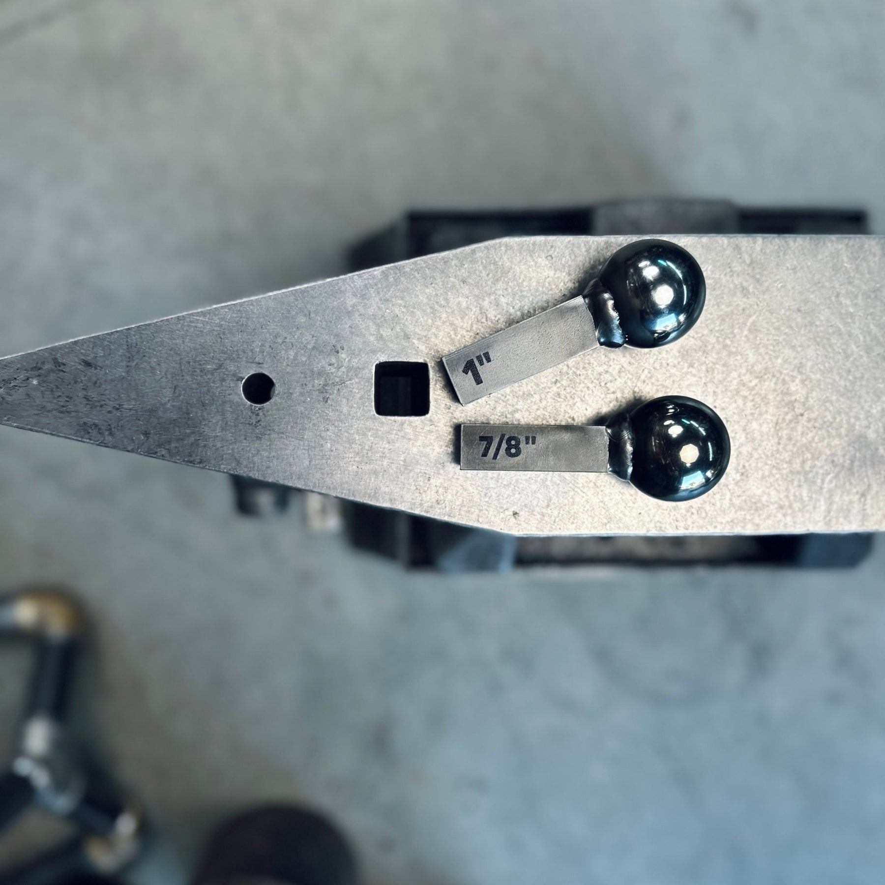 Available with either a 1” shank or a 7/8” shank. These are all fabricated by us in our Florida shop using US-sourced steel and ball bearings.