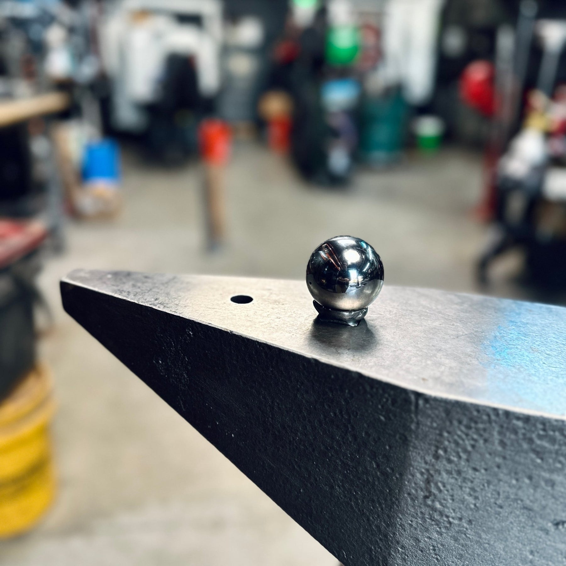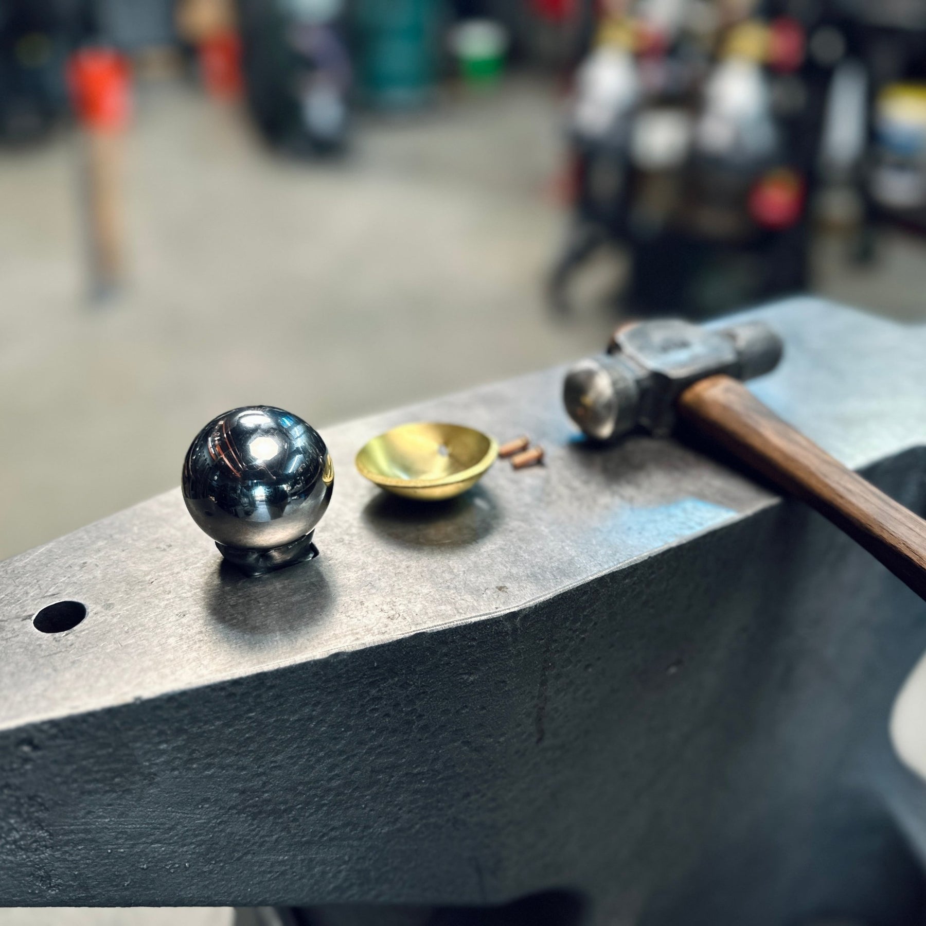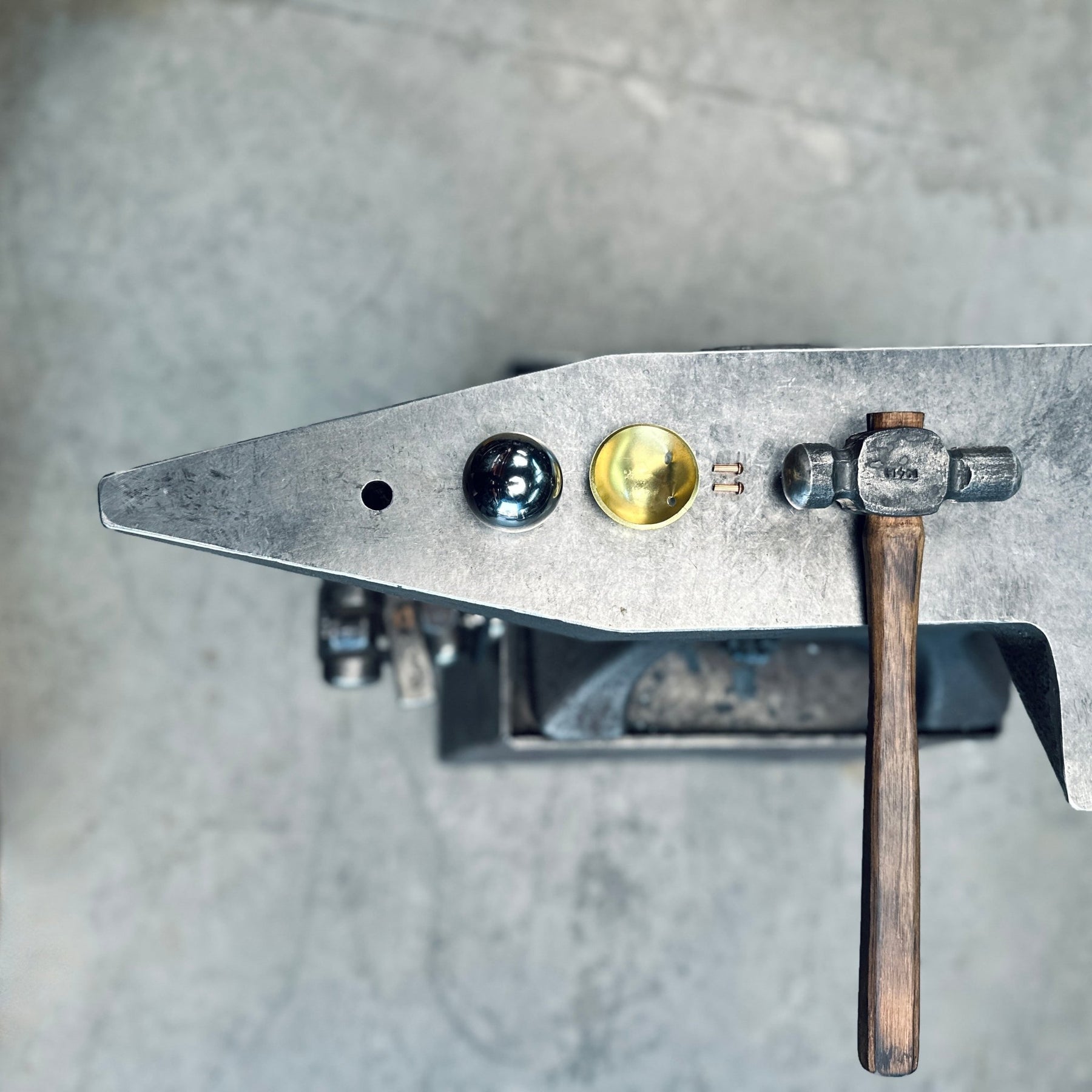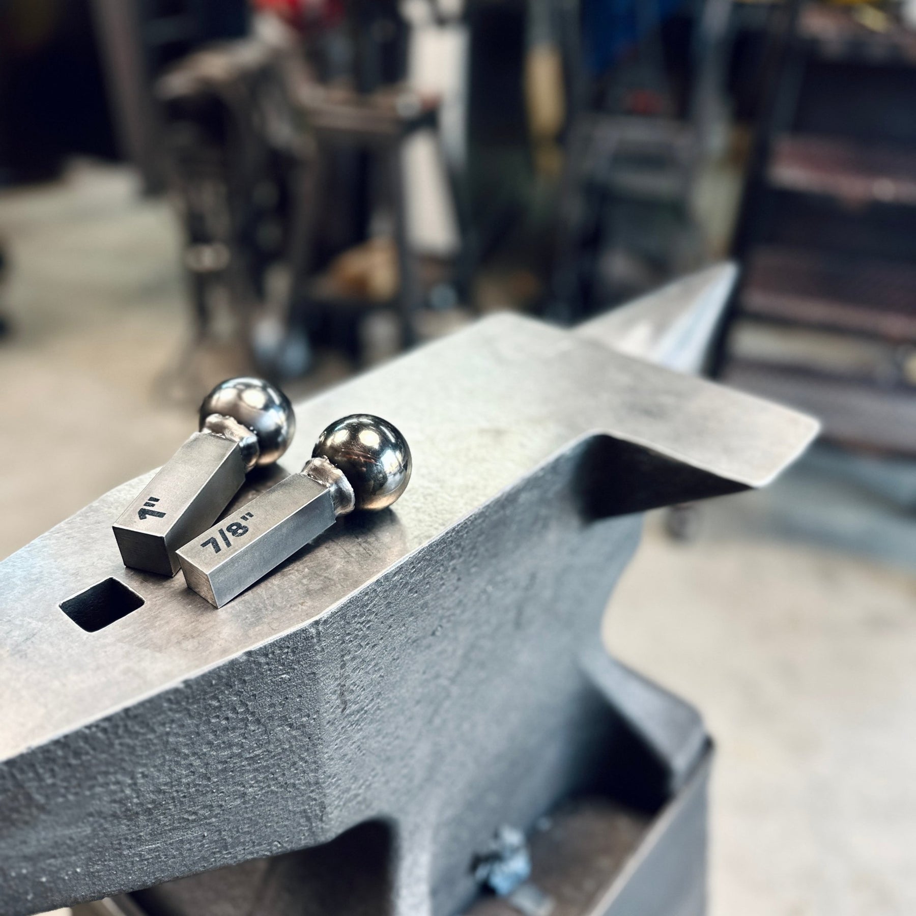 If you’ve got an anvil, this drops straight into your hardy hole and turns it into a bombproof ball die setup for texturing scoops, dishes, and anything else with a 2” diameter that needs solid backing.